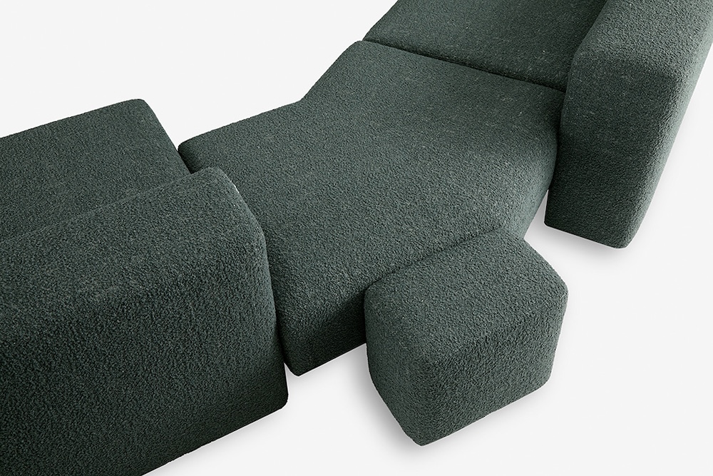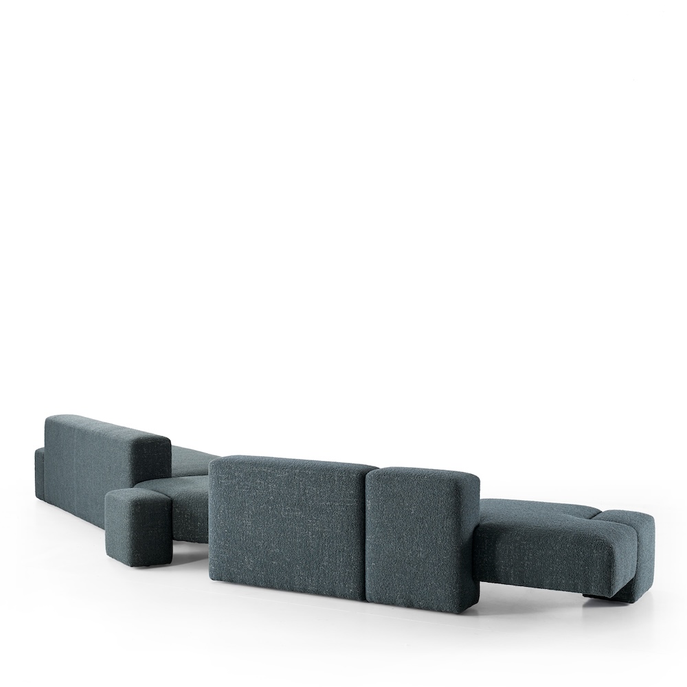 The Cusco Sofa by Giorgio Bonaguro for Carpanese Home was conceived as a modular system inspired by the cyclopean walls of ancient Latin American cities. Its geometric and complementary shapes interlock like stone blocks, forming versatile configurations of seats, joints, and backrests. The design allows for evolutionary solutions that adapt to any space: comfortable and welcoming when viewed from the front, yet offering unexpected visual impact from the side. A balance of concept, aesthetics, production technique, and quality, the Cusco sofa was awarded the Archiproducts Design Award in 2022 for innovation and excellence in design. Crafted in EPA-certified plywood, fir, and hardboard, it is padded with open-cell polyurethane and Dacron layers, supported by elastic straps, and finished in leather or fabric upholstery.