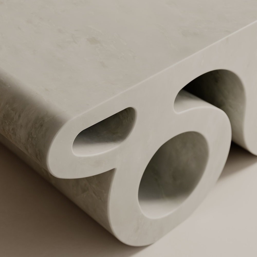 The Joie Coffee Table merges sculptural form with refined craftsmanship. Its bold circular elements and fluid lines highlight the expressive qualities of marble, bringing elegance and presence to any interior.