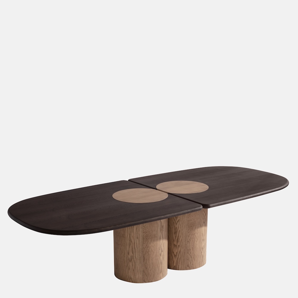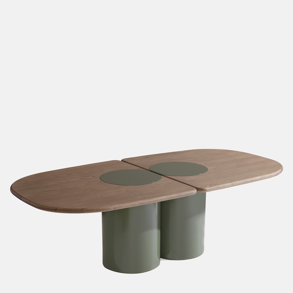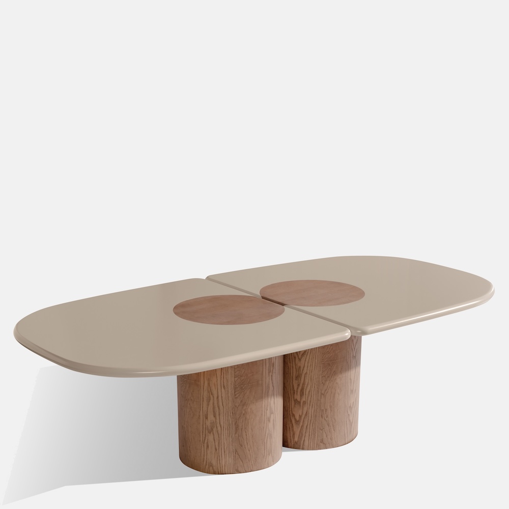The Ladybug Dining Table by Matteo Zorzenoni features rounded lines and cylindrical legs that culminate in the tabletop, evoking the wings of a ladybug. Available in wood, lacquer, or marble tops, the Ladybug presents a sculptural and refined presence that makes it an essential dining statement.