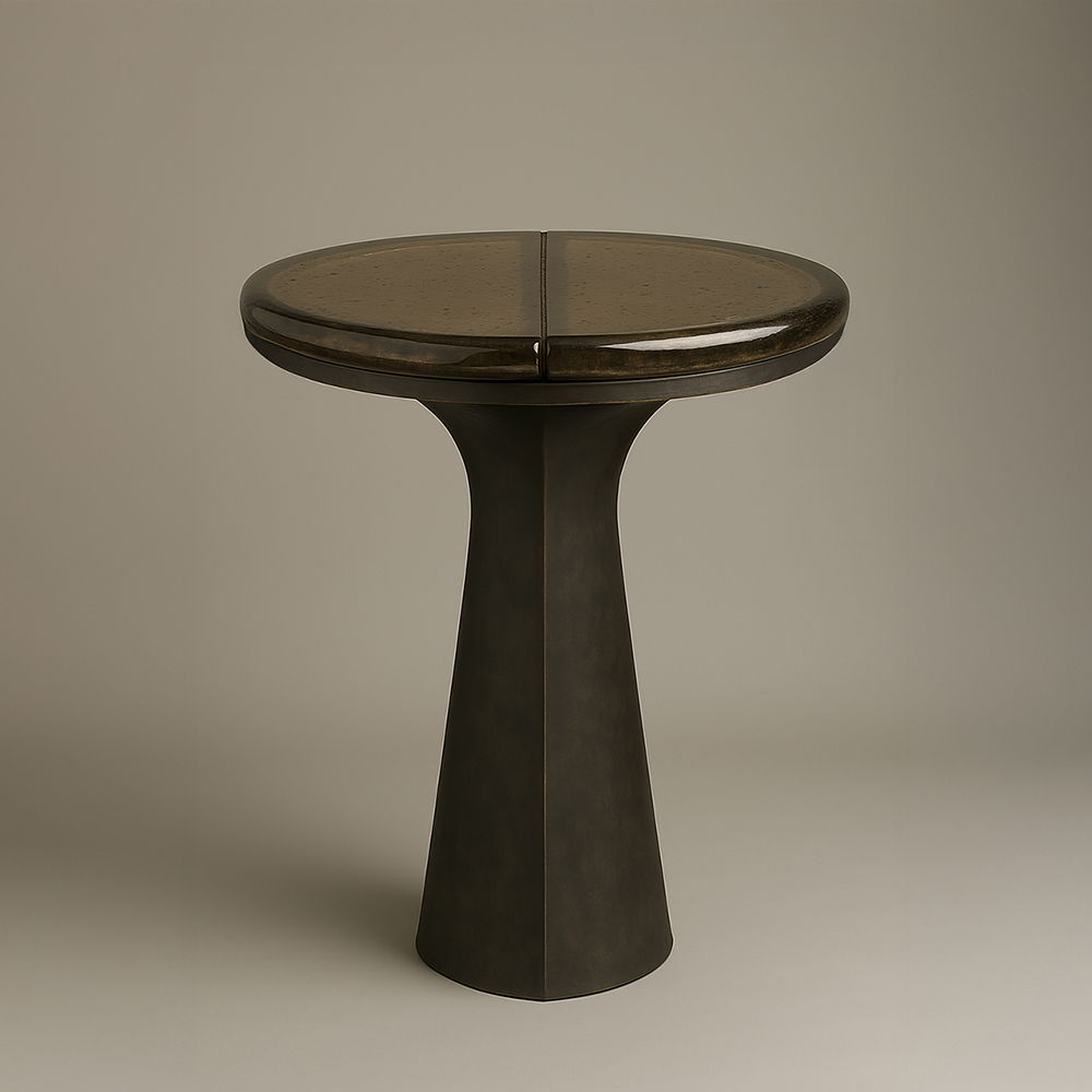 The Nera Side Table by Jordan Carlyle combines a bronze sculptural base with a refined glass top. Its fluid silhouette and material contrast create a strong visual presence, balancing elegance with craftsmanship.