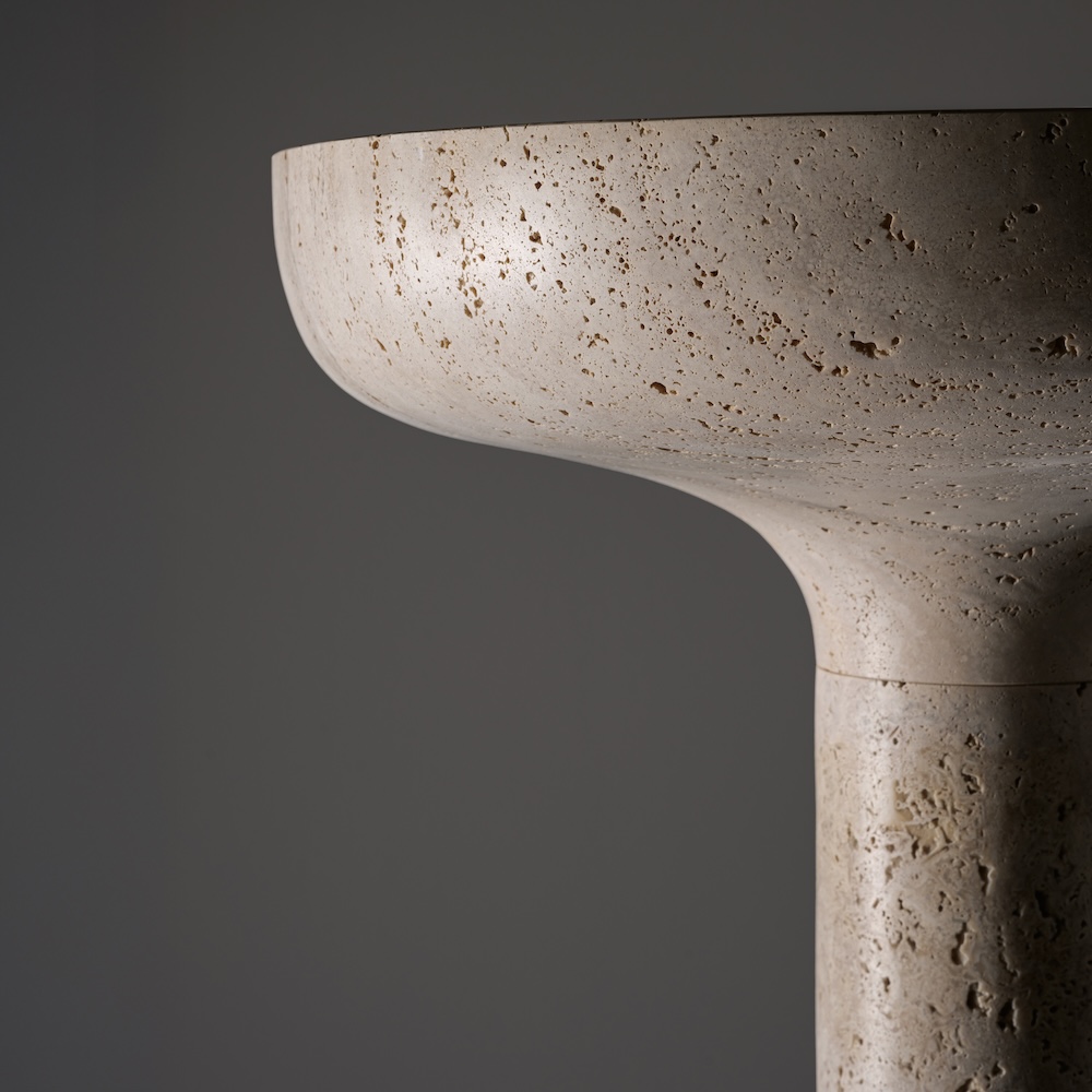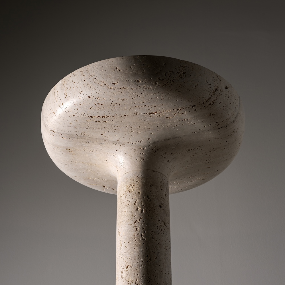 The Stelo Floor Lamp, designed by Joris Poggioli in 2024, is a sculptural column crafted in Travertino Navona. Defined by its slender, elongated form and flared top and base, the piece embodies a refined balance between minimal geometry and the natural texture of stone. Both functional and decorative, it serves as an elegant support for displaying objects or as a standalone statement piece.
