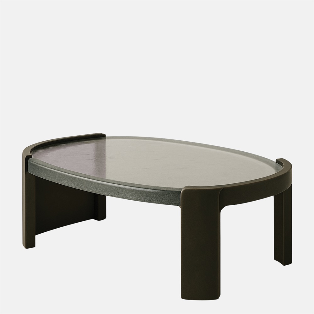 The Ovoo table features a combination of luxurious materials, creating a unique and sculptural presence. With various marble tops available, this piece incorporates wooden parts and artistic metal bases, offering customization through finishes that adapt to different interior styles. The asymmetrical oval top further enhances its modernist design, balancing form and functionality.