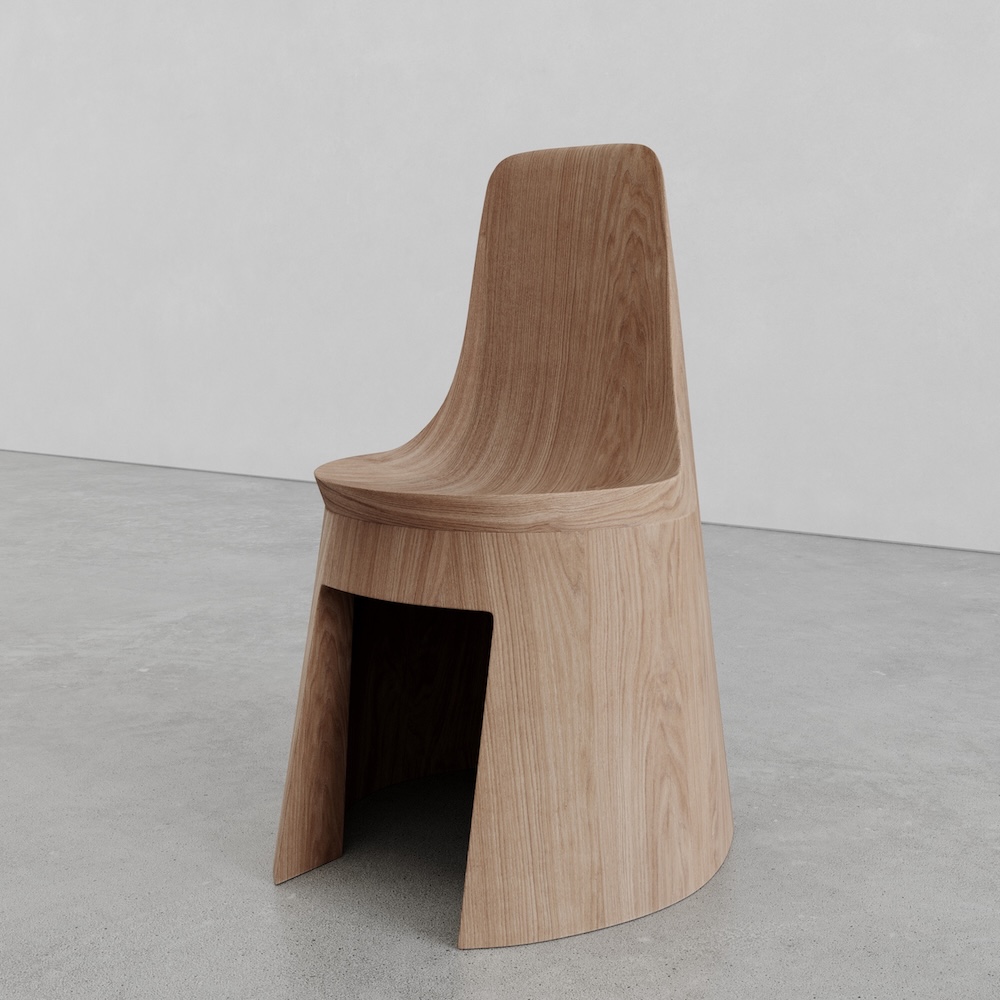 The Santos chair by David and Carlos Romell is a sculptural seating piece carved from solid oak, defined by its monolithic form and architectural presence. The chair’s generous mass is softened by subtle curves and precise cutouts, creating a balance between strength and restraint. Handcrafted in Italy and produced in a limited edition, the Santos chair reflects a rigorous exploration of volume, material, and proportion.