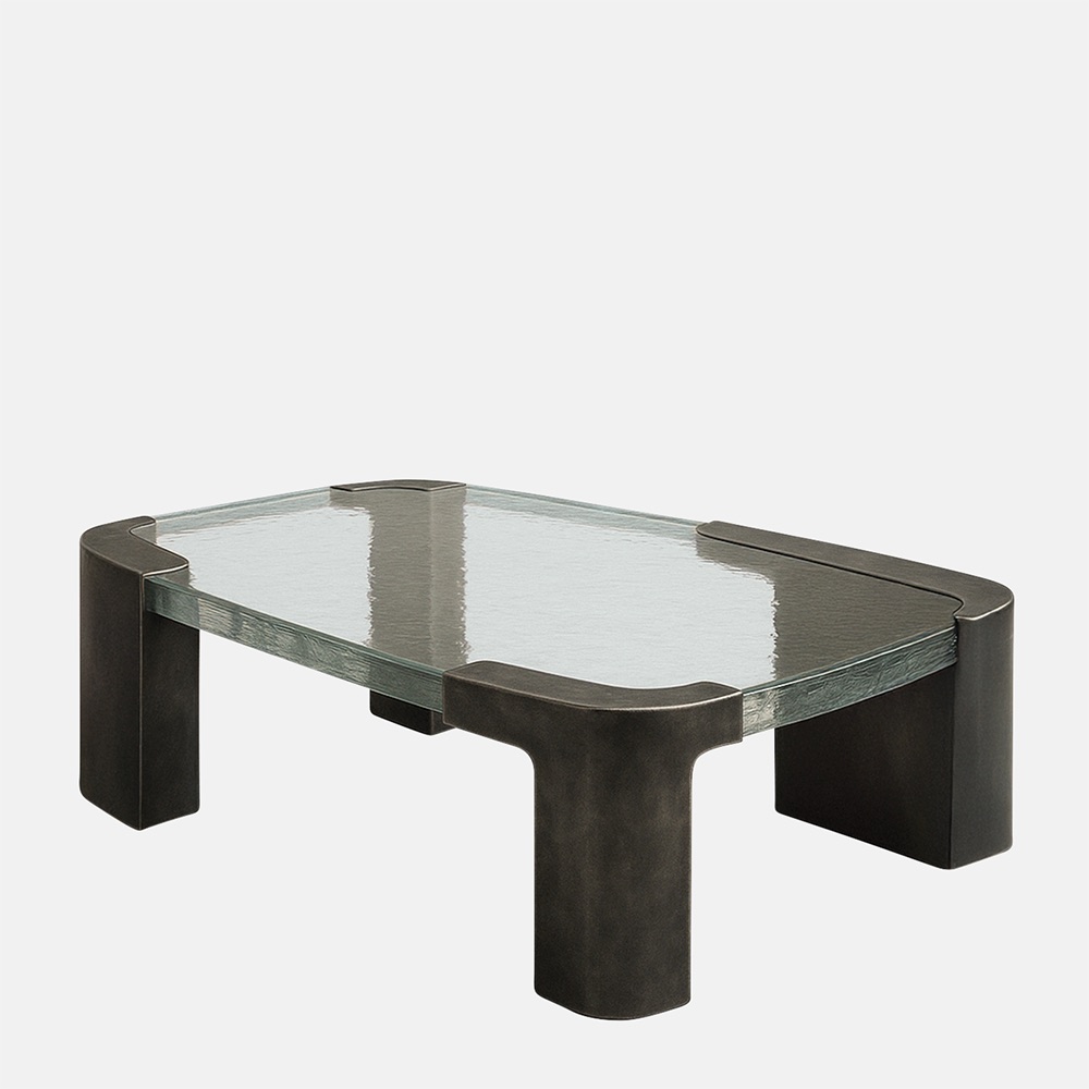 The Aurora Dining Table uses the trilateral base of the Aurora Coffee Table. The wide timber top is endowed with a soft linear and multi-directional design bringing an expression of natural and organic strength. The table is complete with brass detailing. The elegant metal legs provide a strong contrast to the table top and ensure a light, yet strong and elegant appearance.