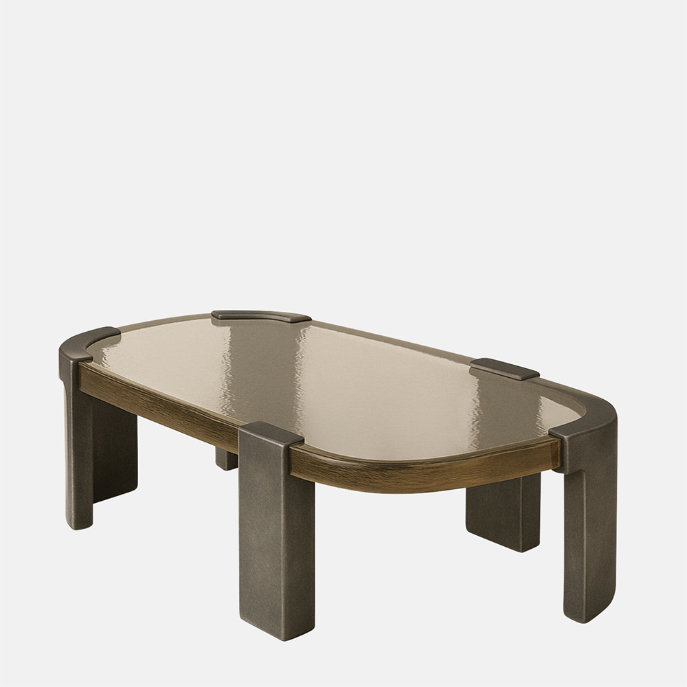 A family of round tables of rustic proportions in glossy woods or lacquer finishes, including the exclusive Oxblood Special Lacquer. The sturdy legs are protected by metal plates in the usual Casa Casati metal finishes.