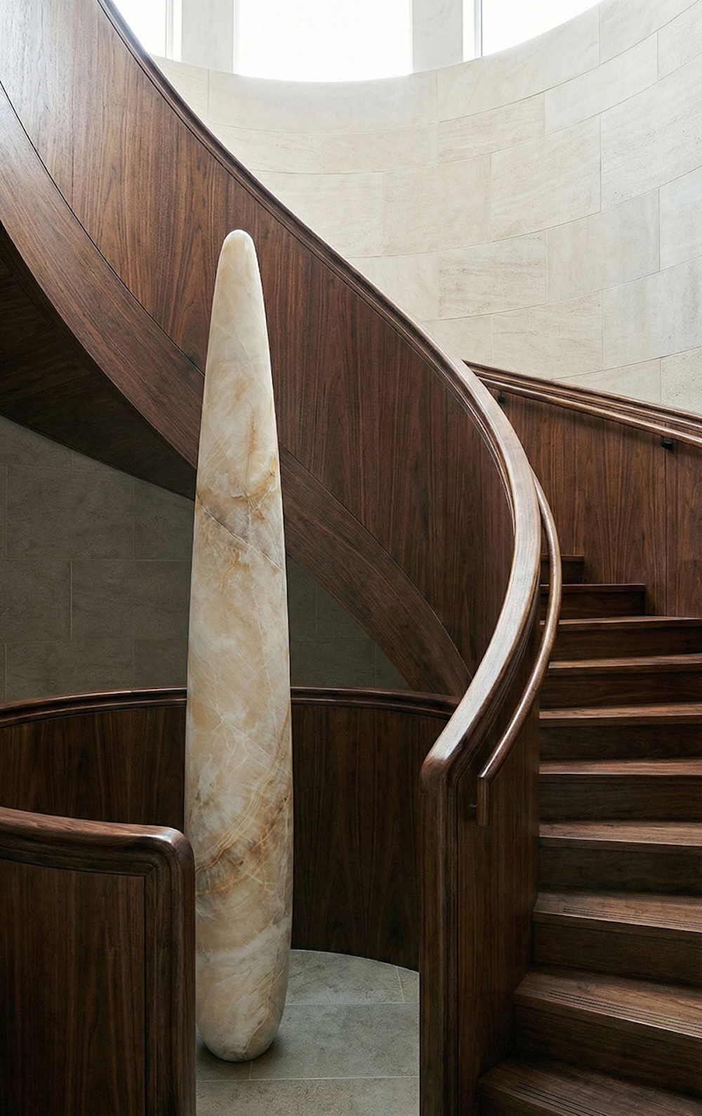 The Hero floor lamp by David and Carlos Romell is a monumental sculptural lighting piece carved from solid white onyx. Its elongated organic form highlights the natural translucency and veining of the stone, creating a soft ambient glow that feels both architectural and timeless. Each lamp is produced in a strictly limited edition and handcrafted in Italy, emphasizing rarity, material integrity, and artisanal excellence.